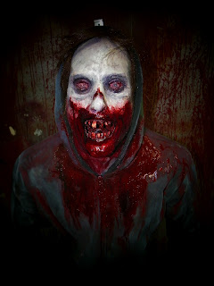 colored like the walking dead..if a zombie. and our new blood that always looks wet even